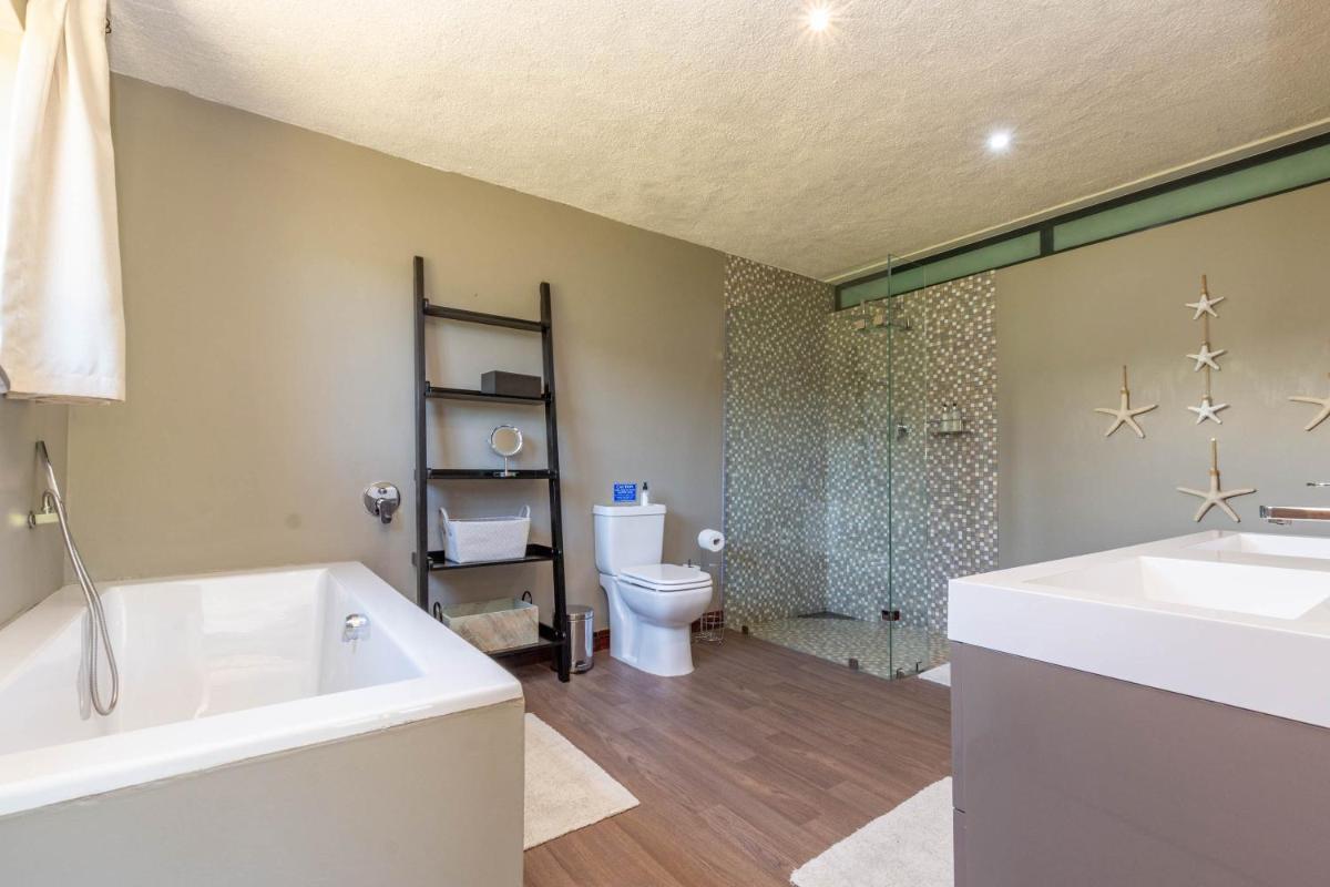 La villa comprende 4 spaziose camere da letto, ognuna che offre ampio spazio per il rilassamento e il riposo. Ogni camera da letto è dotata di un suo bagno, completo di vasca e una cabina doccia, garantendo un soggiorno confortevole anche dopo lunghe giornate esplorando le aree circostanti. Una cucina completamente attrezzata consente agli ospiti di preparare facilmente i loro pasti, rendendo 93 Hillcrest una scelta ideale per famiglie o gruppi di amici che cercano un'esperienza a casa.
