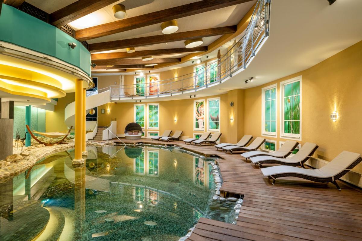 Hotel Am Haslinger Hof, situato a Bad Füssing, a soli 1,6 km da Eins Thermal Baths, offre alloggi lussuosi con un centro fitness, parcheggio privato gratuito, un giardino lussureggiante e un salotto condiviso. Questo stabilimento a 4 stelle vanta Wi-Fi gratuito, una terrazza e un bar accogliente. Gli ospiti amano l'accesso a una piscina al coperto, sauna e varie strutture ricreative come una discoteca e un centro benessere. Le camere sono complete con una zona salotto, televisori a schermo piatto con canali satellitari, casseforti, bagni privati dotati di docce, articoli da toeletta gratuiti e asciugaci. È incluso un ampio armadio.