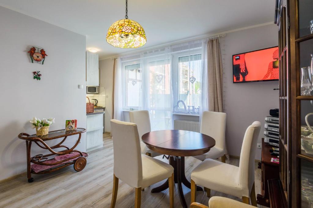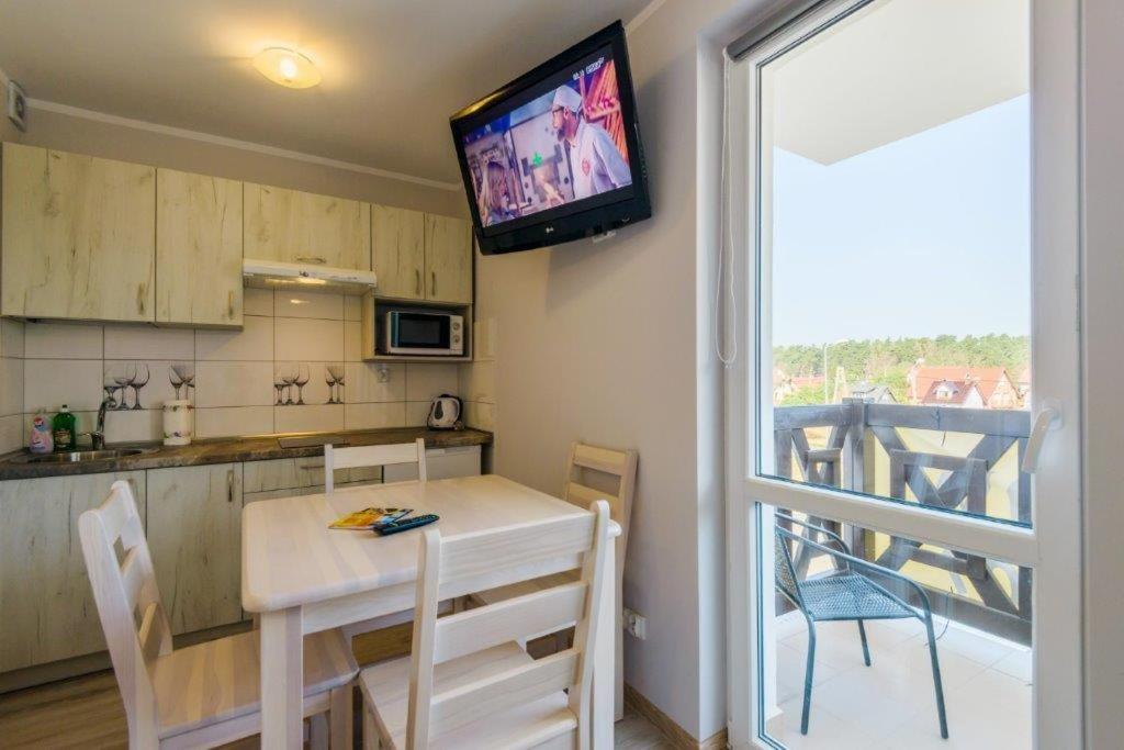 Ogni unità di Apartamenty Mierzeja - Leśny Zaułek Sztuwo presenta un balcone, completo di tutti gli elementi essenziali necessari per una deliziosa esperienza culinaria. L'angolo cottura completamente attrezzato include un forno a microonde, perfetto per pasti veloci e una sala da pranzo dove gli ospiti possono godersi il cibo. Una TV a schermo piatto garantisce che l'intrattenimento non sia mai lontano, fornendo un'atmosfera accogliente sia per il tempo libero che per il lavoro.