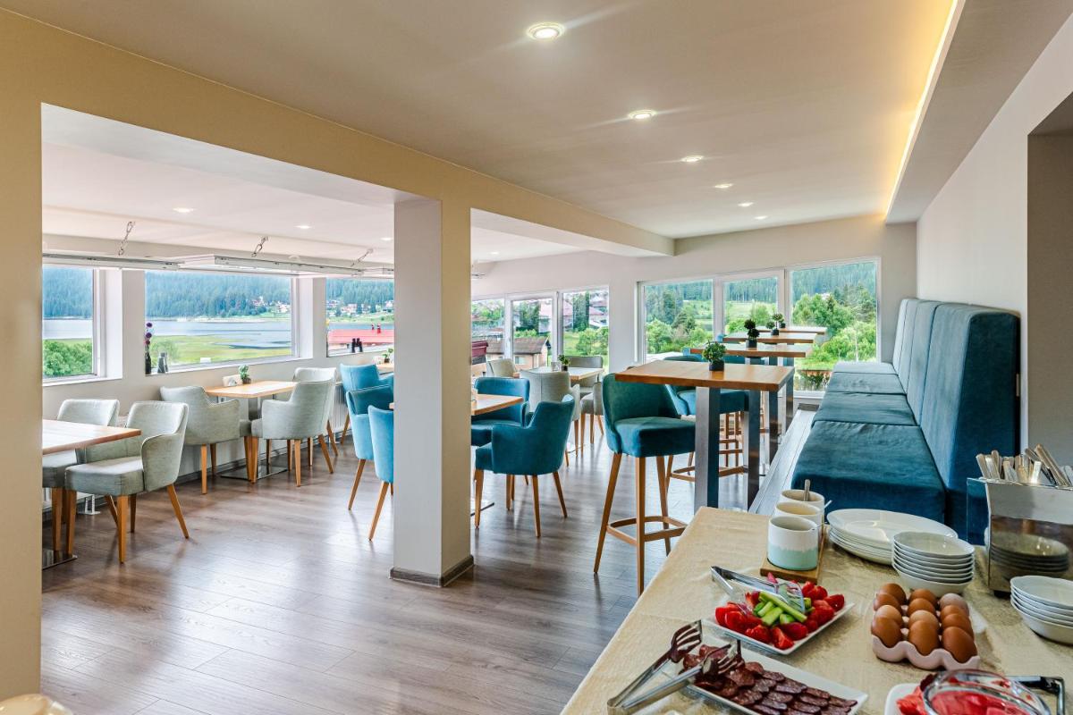 Camere grandi e calde con vista sulla diga o sulla foresta.