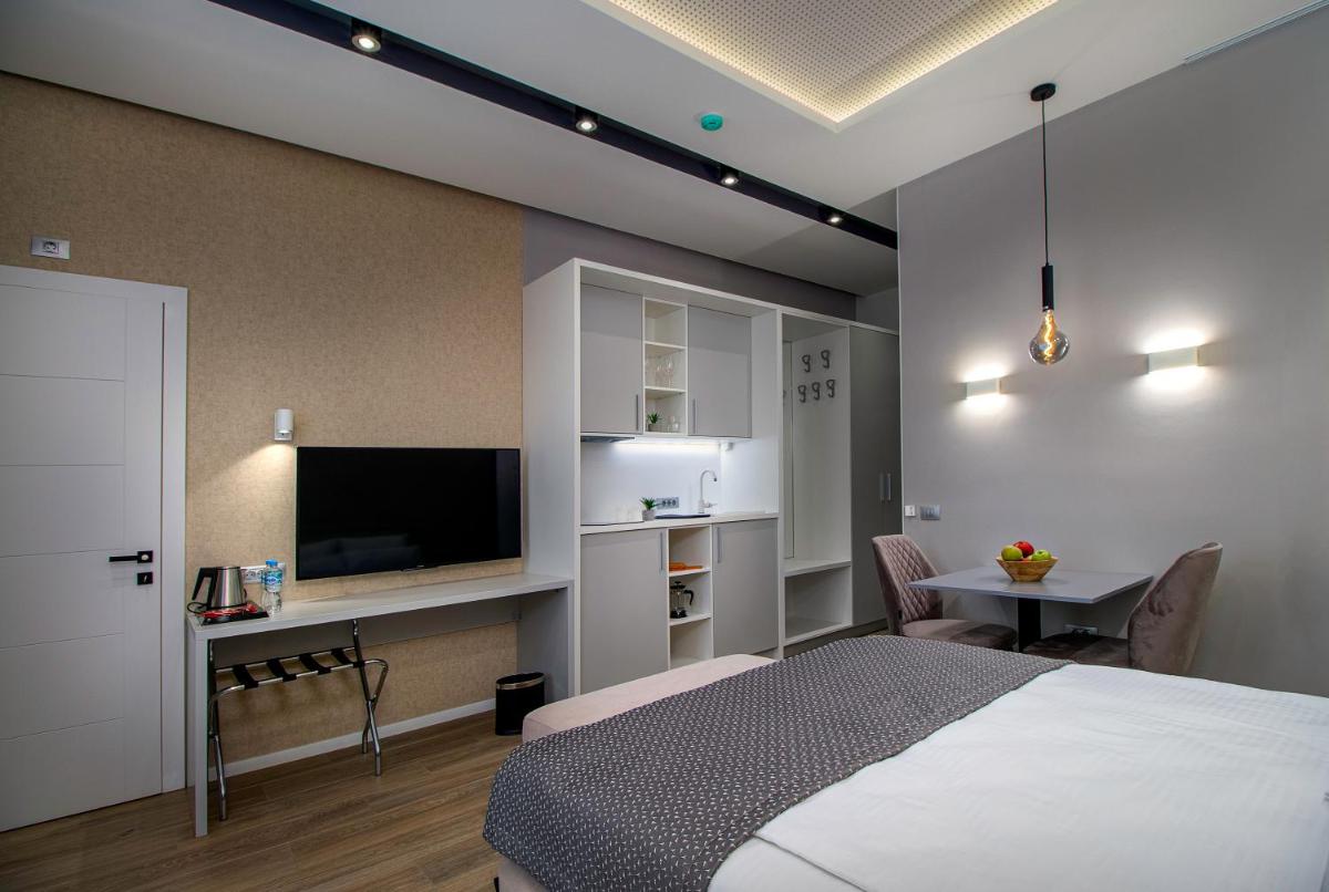 Ogni appartamento presenta una cucina completamente attrezzata con elettrodomestici essenziali, garantendo comodità durante il soggiorno. Le spaziose unità sono complete di lenzuola, asciugamani e servizi come un frigorifero, una stufa e gli stoviglie da cucina. Gli ospiti apprezzeranno il design elegante e gli arredi moderni in tutto l'edificio, che comprende camere non fumatori e bagni privati con docce walk-in, pantofole e asciugatrici.