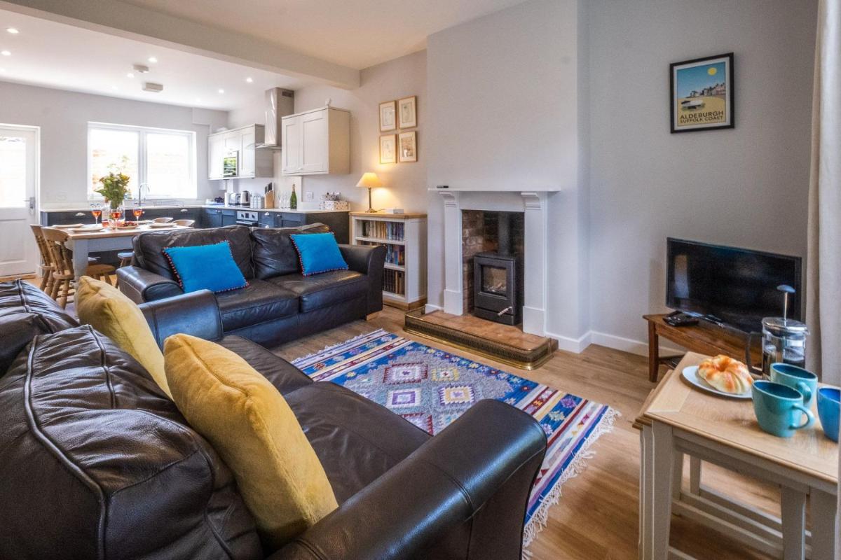 Elm Cottage offre alloggi accoglienti ad Aldeburgh, situati vicino alla spiaggia di Sudbourne e a soli 15 km dal castello di Framlingham. Con un patio e Wi-Fi gratuito, questa casa per le vacanze vanta 3 camere da letto, una cucina completamente attrezzata con elettrodomestici e ampie servizi tra cui un camino. Gli ospiti si godono di 3 minuti a piedi dalla spiaggia di Aldeburgh e le vicine attrazioni di Saint Botolph's Burgh (20 miglia), Bungay Castle (26 miglia) e aeroporto internazionale di Norwich (50 miglia). Goditi il calore della stagione nelle strutture barbecue di Elm Cottage.