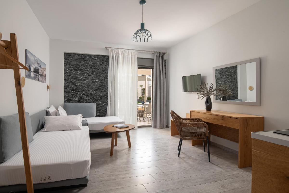 Per un ulteriore rilassamento, Leon Villas offre una spaziosa terrazza che si affaccia sui giardini circostanti, offrendo una deliziosa zona pranzo all'aperto con viste mozzafiato. Ogni unità è arredata con lenzuola e asciugamani, garantendo un accogliente ritiro all'arrivo.