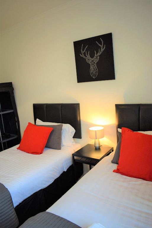 Kelpies Serviced Apartments MacGregor offre camere non fumatori, una cucina completamente equipaggiata con sala da pranzo, un bagno privato, una TV a schermo piatto, asciugamani e lenzuola gratuiti e una zona salotto con camino.