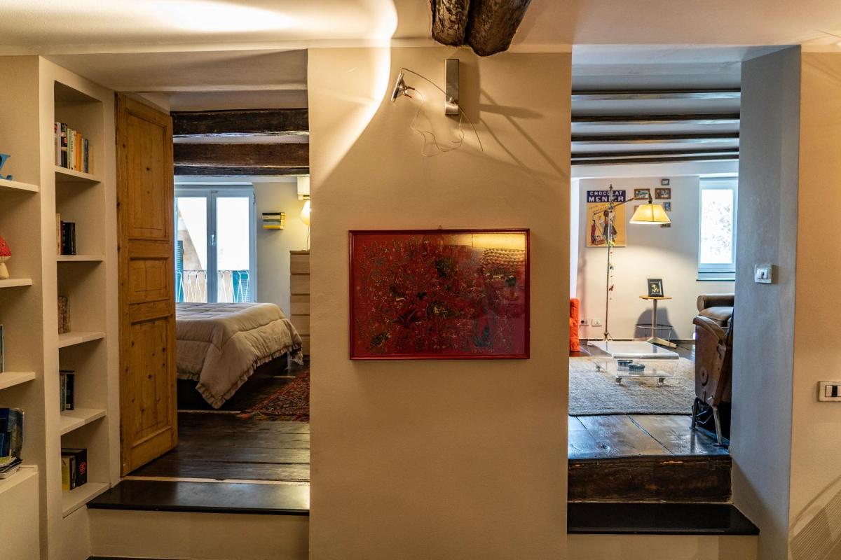 L'appartamento offre ampio spazio con bizzarre decorazioni personali e baccelli di caffè.