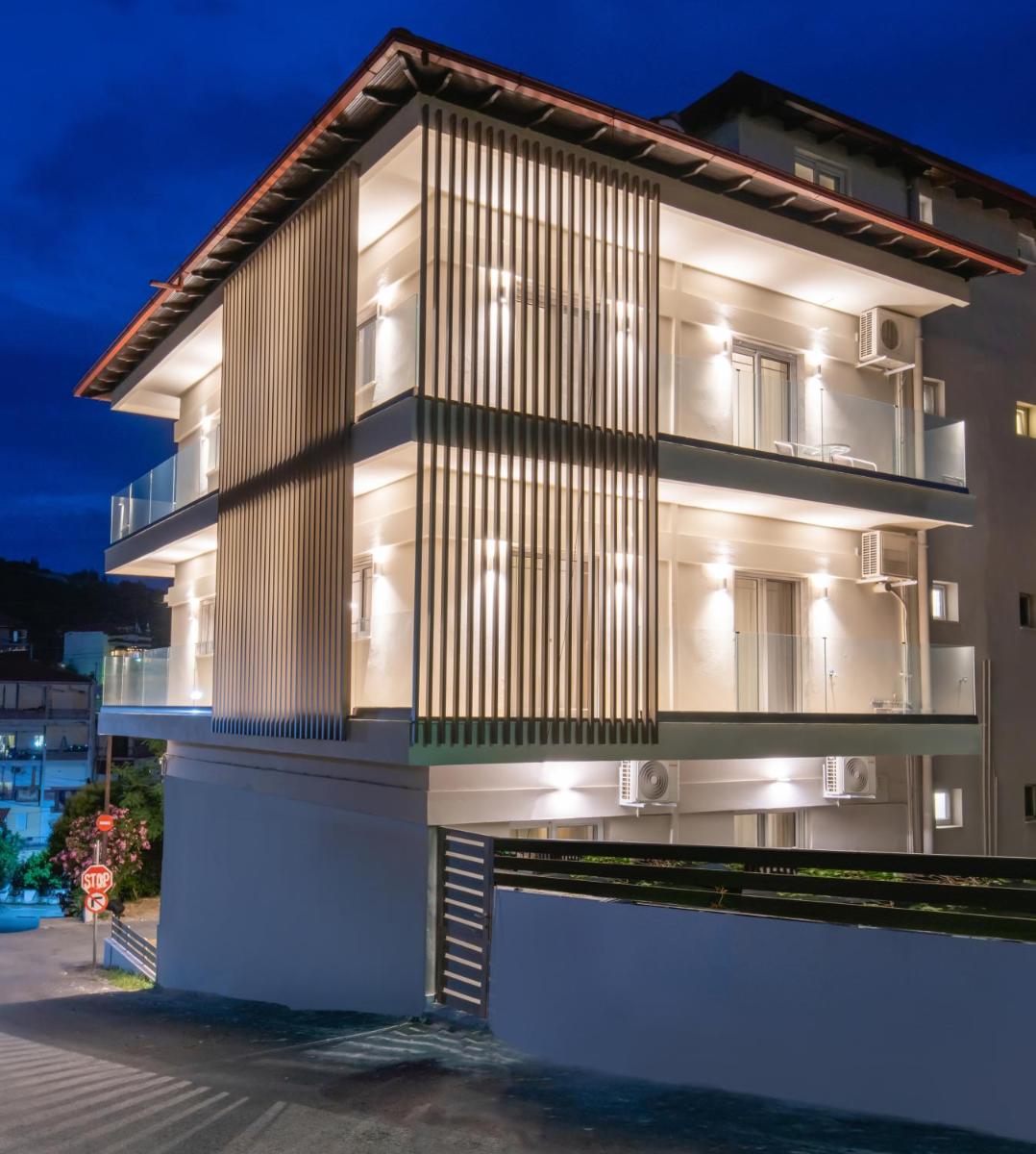 Caratteristiche chiave: - Alloggio moderno in Neos Marmaras - giardino e cucina ben attrezzata - Accesso Wi-Fi gratuito -Unità climatizzate con guardaroba, macchina da caffè, microonde, minibar, cassetta di sicurezza, TV a schermo piatto, balcone, bagno privato con doccia - Balconi con aree da pranzo sia al coperto che all'esterno - Strutture per lavanderia - Viste sul mare e sulle montagne