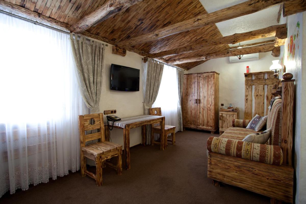 Tutte le stanze decorate individualmente a Pidkova includono un bollitore e un frigorifero. I bagni sono dotati di asciugacapelli e pantofole.