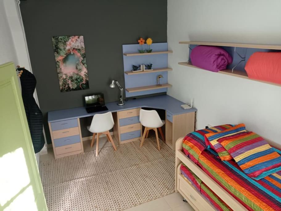 Il proprietario offre tre camere da letto, un soggiorno, una TV equipaggiata, una sala da pranzo piena con cucina e un piano terra con bagno con doccia e bidet. Tuttavia, il proprietario fornisce una terrazza con vista sulle montagne che puoi usare per spostarti in casa o semplicemente rilassarti nel pomeriggio.