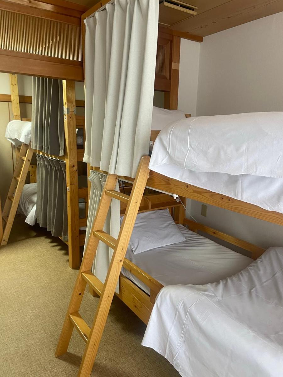 Gli ospiti di Bigouse Shaq possono scegliere di soggiornare in stanze del dormitorio con letti a castello o in camere private con pavimenti di tatami (stringa intrecciata) e biancheria da letto futon tradizionale. Il bagno e il bagno sono condivisi.