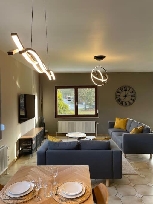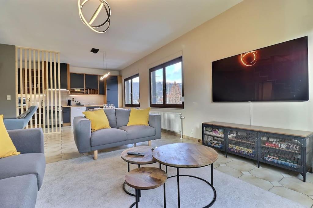 Questo affascinante alloggio, situato tra Namur e Dinant a soli 13 km dalla stazione ferroviaria di Anseremme e 30 km da Charleroi Expo, offre agli ospiti un ritiro sereno con vista mozzafiato sulle sue terrazze e giardini. Perfettamente situato per esplorare le attrazioni locali come Musée Provincial des Arts Anciens Du Namurois, Musée de la Tour D’Anhaive e Musée Africain de Namur, gli ospiti possono immergersi nella storia, nell'arte e nella cultura. Con due spaziose camere da letto, una cucina completamente equipaggiata e un soggiorno accogliente, l'appartamento offre tutto il necessario per un soggiorno confortevole. Goditi una serata rilassante vicino al camino mentre si ammira le viste panoramiche dal balcone. Il Wi-Fi gratuito garantisce una connettività regolare durante la tua visita, rendendo facile rimanere in contatto con i propri cari a casa. La posizione della proprietà lo rende ideale per coloro che desiderano esplorare le aree circostanti, comprese le città vicine come Charleroi e Spa, che offrono una varietà di attività all'aperto come escursioni, ciclismo e golf. Per una maggiore comodità, gli ospiti hanno accesso a un parcheggio privato gratuito e un servizio navetta gratuito da e verso la stazione ferroviaria. Che tu stia viaggiando con la famiglia o gli amici, questa proprietà promette un'esperienza memorabile nel cuore del Belgio.