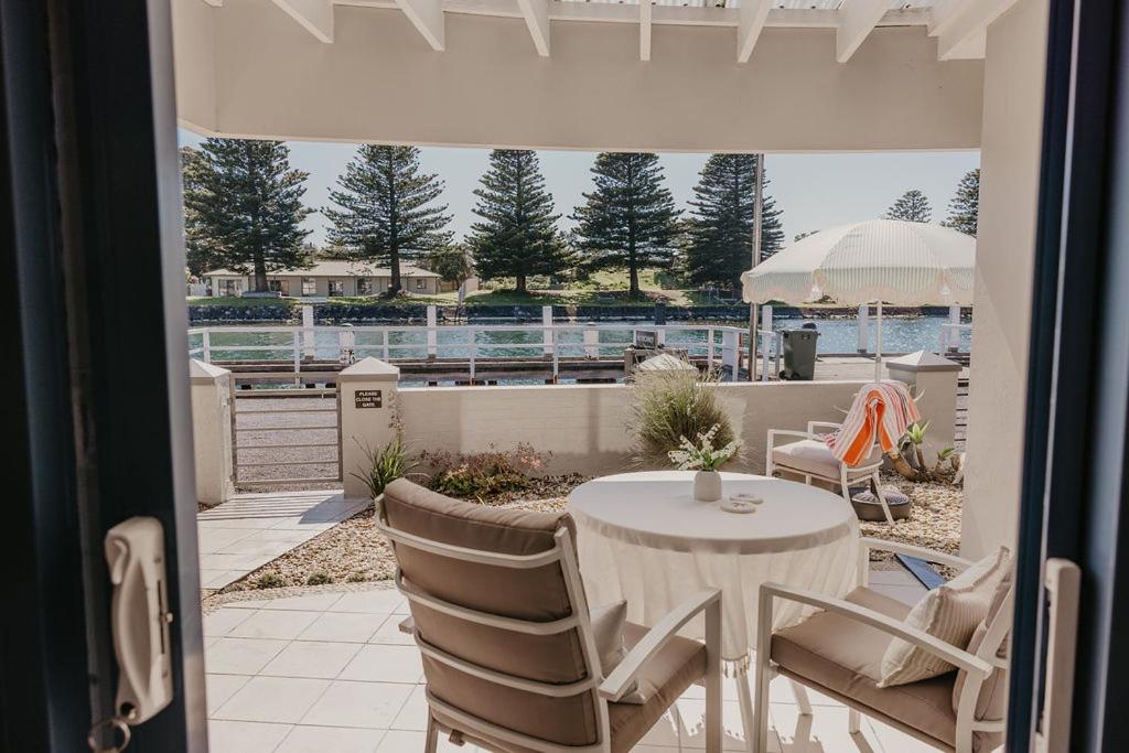 Un bel patio per sedersi fuori e guardare i pescherecci e il fiume
