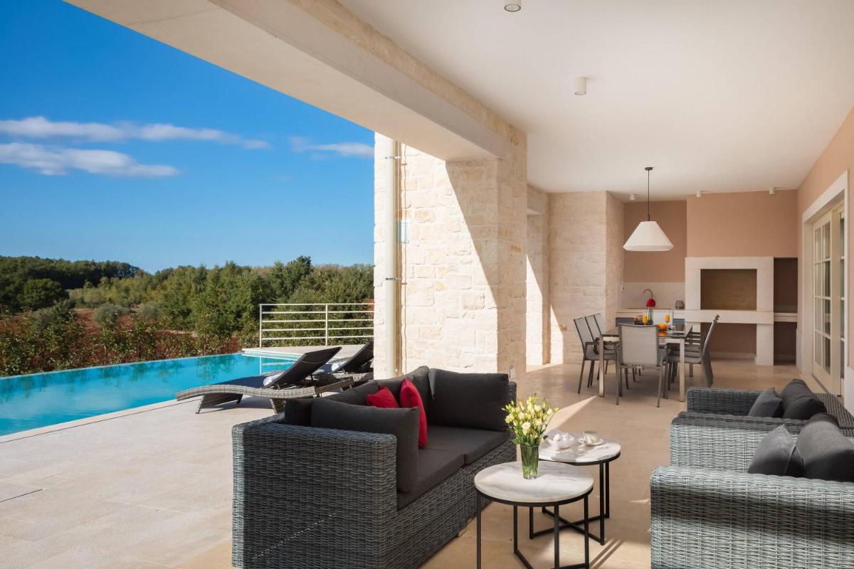 Villa Blanche di ILC, immersa a Brtonigla, offre un affascinante ritiro all'interno del suo lussureggiante giardino. Gli ospiti possono apprezzare la comodità di un balcone, un parcheggio privato gratuito e Wi-Fi gratuito, migliorando il loro soggiorno ad ogni comodità. La villa vanta spettacolari viste sulla piscina, rendendolo un posto perfetto per il rilassamento e il tempo libero.