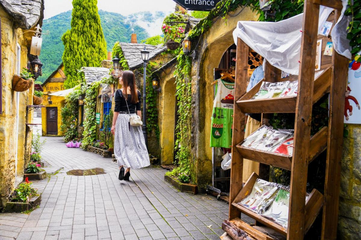 Lo Yufuin Floral Villages Hotel, comodamente situato nel distretto di Yufuin Onsen di Yufu, offre un ritiro sereno in stretta vicinanza a attrazioni popolari come lo Yufuin Retro Motor Museum, Yufuin Showakan e il Museo Yufuin Chagall. Situato a sole 28 km da Oita Bank Dome e una piacevole passeggiata di 5 minuti dal lago Kinrinko, questa affascinante stabilimento a quattro stelle offre una perfetta miscela di rilassamento ed esplorazione. Gli ospiti godono di un parcheggio privato a loro disposizione, insieme al wifi gratuito durante il loro soggiorno. Ogni stanza presenta una televisione a schermo piatto, garantendo che le opzioni di intrattenimento non siano mai lungi dalla portata.